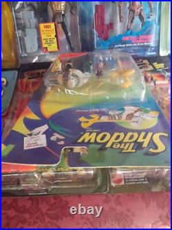 Among them, there might be a figure of The Shadow, a mysterious and classic pulp fiction character known for fighting crime in the 1930s. These toys cater to collectors or fans of action figures from the era, offering a nostalgic trip back to the 90s with characters from memorable movies. Only one figure is damaged the shadow figure shown. All else brand new with some wear. See pics for details 16 figures on card.